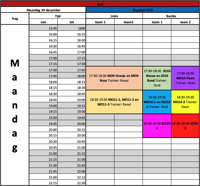 Let op!: Alle trainingen zijn deze dag in de blaashal van EHV (Geessinkweg 148, Enschede)